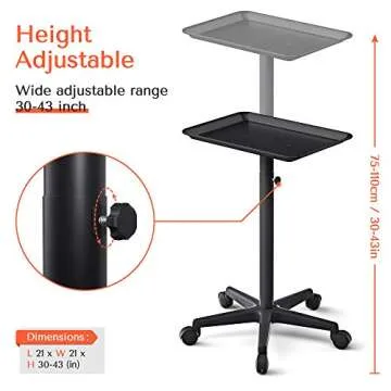 Show moreEnhance your workspace with the TASALON Salon Tray on Wheels. This premium aluminum instrument tray is not just a tool—it's a game changer for professionals across various industries. Whether you're a tattoo artist, a hairstylist, or a dental professional, this adjustable salon service rolling tray is crafted to deliver unparalleled convenience. Designed to grow with your needs, it features an adjustable height range from 30" to 43", ensuring you always have the perfect setup for your tasks. Built with high-quality materials, this rolling cart is not only stylish but also incredibly durable. It stands out as a versatile solution, offering you multiple uses in one compact design, helping you maintain the efficiency you need in busy environments like salons and clinics.