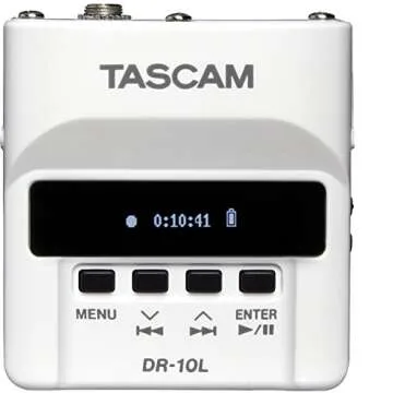 TASCAM Micro Portable Digital Audio Recorder with Lavalier Microphone, AV recording, interview recording 24-Bit/48 kHz BWAV File Format, White (DR-10WL)