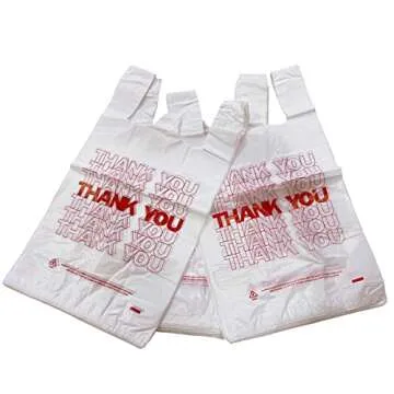 TashiBox Plastic bags with handles,thank you bags,Measures 11.5" X 6.25" X 21", 15mic, 0.6 Mil (400 Count),Reusable and Disposable Grocery Bags
