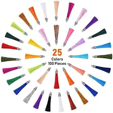 Elevate your crafting experience with the Flasoo 100 Pieces Silk Tassels, a treasure trove of 25 different colors designed to inspire your creativity. Each tassel is meticulously handmade from premium silky threads, ensuring that they're not only soft to touch but also sturdy enough to withstand the wear and tear of daily use. Ideal for a variety of DIY projects, these tassels are perfect as charms on keychains, as decorative elements for jewelry, or even as stylish attachments for handbags....