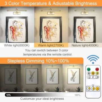 Show more This stunning wifi-enabled rechargeable LED picture light transforms how we illuminate artwork and décor in our homes. With its sleek design and robust functionality, this 15.75-inch beauty is more than just a light; it's an essential accessory for any art lover. The 5000mAh built-in rechargeable battery ensures that you can enjoy up to 30 hours of glorious lighting, perfect for showcasing your favorite pieces without the hassle of wires or plugs.