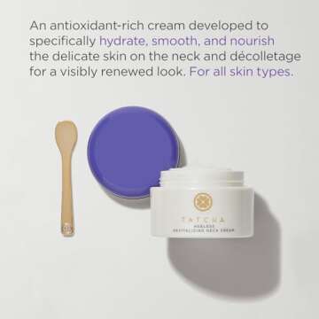 Show moreThe Ageless Revitalizing Neck Cream is a revolutionary product designed with a focus on hydrating, smoothing, and nourishing the delicate skin on the neck and décolletage. This rich cream, developed by Tatcha, incorporates a blend of powerful antioxidants and natural botanical actives, making it suitable for all skin types. Unlike conventional products that often irritate sensitive skin, this cream is non-irritating, non-sensitizing, and dermatologist tested, ensuring your skin receives the gentle care it deserves.