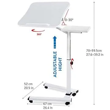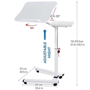 Tatkraft Like Portable Laptop Desk with Mouse Pad, Rolling Computer Stand with Adjustable Height, Sturdy and Ergonomic, White