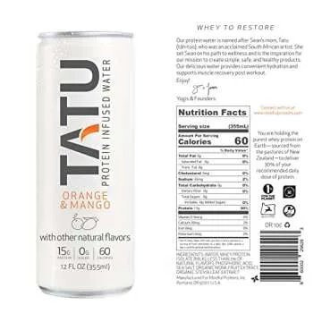 Show moreIntroducing TATU Ready-To-Drink Protein Infused Water - the perfect solution for those on-the-go looking to boost their protein intake without sacrificing taste! This innovative product combines a refreshing drink with essential nutrition, enabling you to recover faster and maintain energy levels throughout your day. Available in two tantalizing flavors, Orange Mango and Lemon Ginger, TATU stands out with a unique blend that accommodates various dietary needs while being extremely convenient.