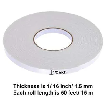 Tatuo 2 Rolls Double Sided Foam Tape PE Foam Tape Sponge Soft Mounting Adhesive(1/2 Inch by 50 Feet,White)