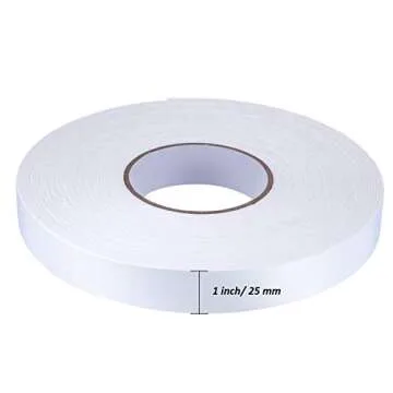 Show more Introducing the Tatuo 2 Rolls Double Sided Foam Tape, your ideal adhesive solution for countless applications. Designed with versatility in mind, this strong, double-sided adhesive tape is perfect for those small projects around the home, office, or workshop. With each roll measuring 1 inch wide and 50 feet long, you will receive two rolls that provide ample material for all your mounting and fastening needs. Crafted from durable PE foam, this tape is engineered to provide excellent adhesion without damaging surfaces.