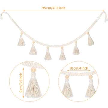 Show moreTransform your living spaces with the exquisite Charming Tatuo Boho Macrame Tassel Garland. This stunning decor piece seamlessly blends rustic charm and elegance, making it the perfect addition to any room or event. The set includes four intricately crafted tassels, each measuring 3.5 inches high and expertly woven from high-quality cotton. Finished with delicate beads, these tassels promise not only durability but also versatility that allows you to elevate your home and party decor with ease. The soft, beige color complements a variety of aesthetics, ensuring they fit beautifully into your design theme. Whether you're decorating a cozy photo backdrop or sprucing up your living area, this tassel garland will not disappoint in quality or impact.