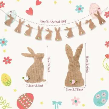 Tatuo Easter Banner Burlap Garland Banners, Burlap Bunny Garland for Easter Decorations Fireplace Home Office Outdoor Party Supply, Bunny