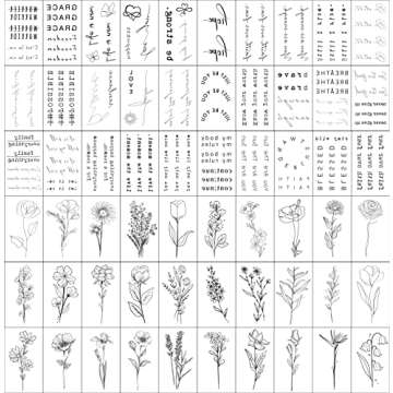 TATUWST Realistic Temporary Tattoos - 60 Sheets Tiny Small Removable Tattoos, 30 Pcs Inspirational Quotes Words Tattoos, 30 Pcs Wild Flower Ink Line Botanical Floral Leaf Tattoo Stickers for Women