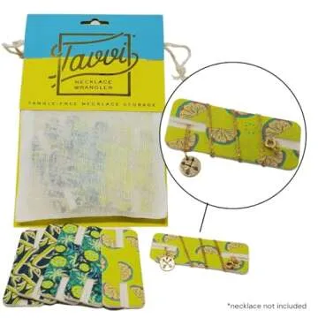 Show more Introducing the Tavvi Necklace Wrangler Tangle-Free Jewelry Organizer – a revolutionary travel companion designed to keep your precious fine chain necklaces tangle-free and easy to access. This innovative 6-pack travel organizer not only saves space in your luggage but also ensures your necklaces remain beautifully displayed and untangled wherever life takes you. Made in the USA from environmentally responsible materials, the Necklace Wrangler combines functionality and elegance, featuring soft-touch finishes and modern patterns that look great whether you're at home or on the go.