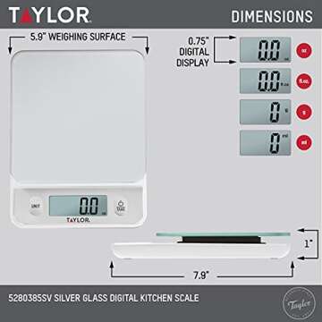 Taylor Glass Top Food Scale with Touch Control Buttons, 11 lb Capacity, Silver