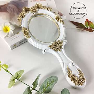 Taywes Vintage Decor Handheld Mirror - Elegant Floral Design with Handle for Women and Girls