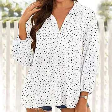 Tazaiy Women Summer Colorful Chiffon Button Blouse Floral Leaves Printed 3/4 Balloon Sleeve Classic Casual Loose Blouses Tee Shirt POM POM Flowy Boho Summer Tops