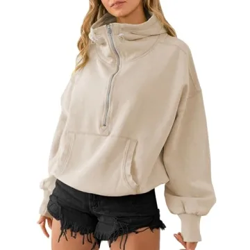 Show more Introducing the TBA High Neck Hoodies for Women, an oversized half-zip drawstring pullover that epitomizes casual style while providing unbeatable comfort. Made from a premium blend of 85% Cotton and 15% Polyester, this hoodie boasts a soft fabric that is skin-friendly and warm—making it an essential layer for chilly weather. Its unique high neck design not only enhances your fashion quotient but also offers extra warmth and protection against the elements. Whether you're running errands or lounging at home, this sweatshirt will be your go-to piece, combining functionality and style seamlessly.