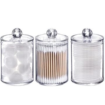 Show moreIntroducing the Tbestmax 3 Pack Plastic Cotton Swab Ball Pad Holder—a perfect blend of style and functionality meticulously designed for all your organizational needs! Constructed from robust hard solid plastic, these lightweight jars provide an elegant aesthetic reminiscent of glass without the associated fragility. Weighing in at just 69.5 g (2.5 oz) and with compact dimensions of 2.7 inches in diameter and 3.6 inches in height, these jars serve as an ideal space-saving solution for your vanity or bathroom. Featuring a tight-fitting lid, they keep your items dust-free while offering easy access and convenience.