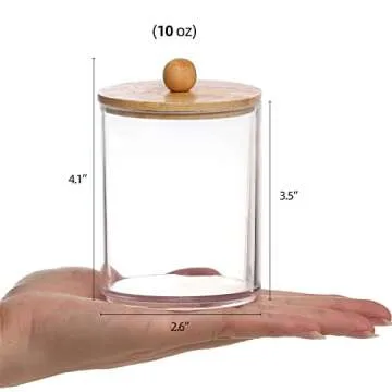 Tbestmax 6 Pack Qtip Holder, 10-Ounce Apothecary Jars with Bamboo Lids for Cotton Ball Swab Pad Dispenser, Bathroom Canisters Organizer