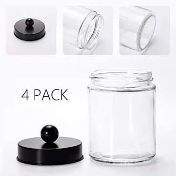 Each canister features a sleek 4.4-inch height (with lid) and a compact diameter of 2.8 inches, allowing them to fit effortlessly on any vanity or bathroom countertop without overwhelming your space. The exquisite black metal lids add a chic flair, making these glass jars a perfect fit for both contemporary and classic decor. You’ll love how they elevate the aesthetic of your bathroom or kitchen while keeping your essentials neatly contained.