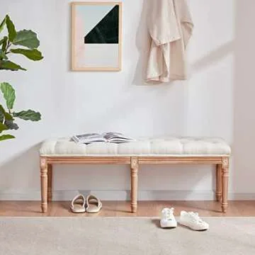 Tbfit Premium Extra-Long Upholstered Tufted Bed Bench Seat for Bedroom, Entryway Wood Bench with Sturdy Wooden Legs, Buttoned Vanity Rectangle Dining Bench (Beige)