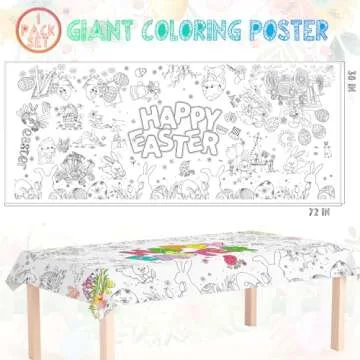 Tbsone Easter Coloring Tablecloth Poster, 72x30 Inch Creative Activity for Kids
