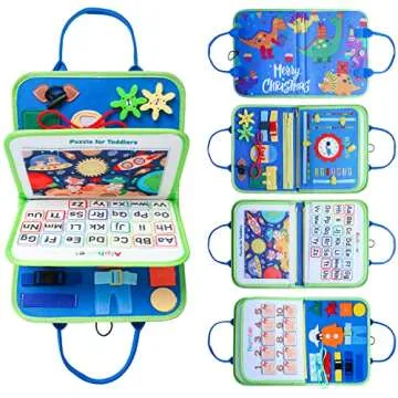TBWIND Busy Board for Toddlers, Travel Toys for Airplane Car, Montessori Toy for 1 2 3 4 Year Old Girls & Boys Gifts, Sensory Board for Educational Learning Fine Basic Dress Motor Skills (Blue)
