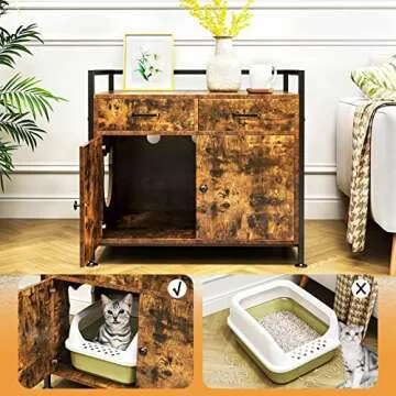 TC-HOMENY Cat Litter Box Enclosure Furniture Storage Cabinet for Living Room