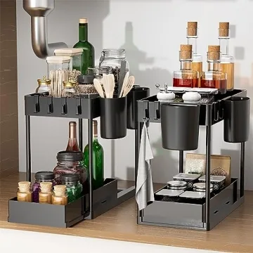 Show moreElevate your home organization with the TCHCWYS Under Sink Organizers and Storage 2 Pack, your go-to solution for efficiently managing clutter. This impeccably designed two-tier sliding drawer organizer is perfect for maximizing the space under your sink while ensuring easy access to your cleaning supplies, beauty products, or any small essentials you frequently use. Measuring a generous 15.55 x 8.46 x 14.76 inches, these organizers boast a sturdy construction made from durable ABS plastic and a rust-resistant stainless steel pipe, ensuring they stand the test of time while keeping your items securely stored.