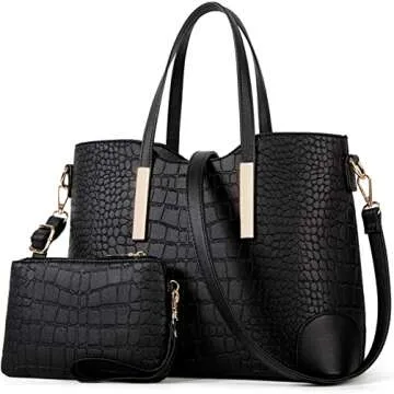 Show moreBuy TcIFE Purses and Handbags for Womens Satchel Shoulder Tote Bags Wallets and other Top-Handle Bags at Amazon.com. Our wide selection is eligible for free shipping and free returns. Pu Leather MATERIAL: High Quality PU Leather Texture:Alligator Grain,Purses and Handbags CLOSURE: Top Zipper Closure, Handbags for Women DIMENSIONS: 13.3"W x 9.4"H x 5.1"D, Handle Drop Length: 6.6" POCKETS: 1 Exterior Back Zipper Pocket,2 Interior Zipper Pocket and 2 Front Wall Open Top Item Pockets FEATURES: Gold-tone Hardware, Zip-pockets in Middle and Back, Detachable Shoulder Strap and Top-zipper Closure