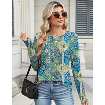 TCOT Women's Fashion 2025 Round Neck Long Sleeve Tops - Elegant Casual Blouses with Chic Paisley Pattern