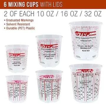 TCP Global Epoxy Resin Paint Mixing Cups Plastic Liquid Measuring Essentials Supplies Kit - Disposable Plastic, Lids, Paint Sticks, Mini Mixing Paddles, Auto Paint Strainers & Paint Can Opener