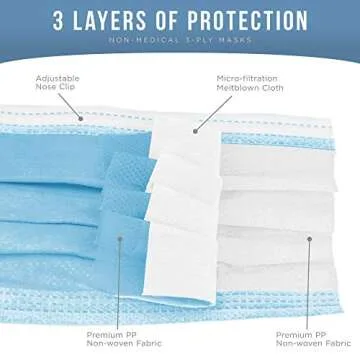 - 3-Layer Filtering Protection: Enjoy peace of mind with the multi-layer structure, consisting of a premium non-woven outer layer, a melt-blown polypropylene filtration layer in the middle, and a soft absorbent inner layer for ultimate comfort.