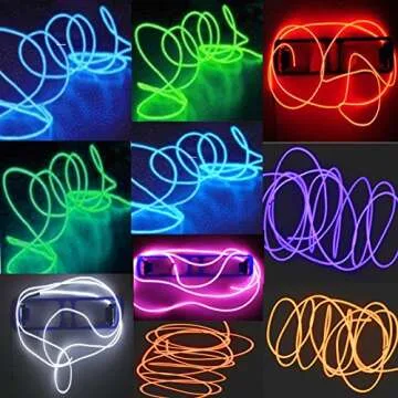 TDLTEK 10 Pack El Wire Neon Lights for Halloween, Burning Man, Party, Decoration 9ft
