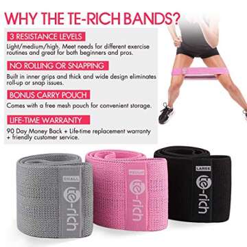 Perfect for improving overall wellness, the Te-Rich exercise bands can seamlessly fit into your fitness regimen. Use them for glute and hip activation exercises or dynamic warm-ups; they engage your muscles gently yet effectively, allowing you to refine your figure.