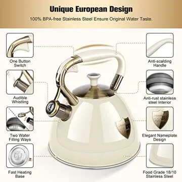 Tea Kettle Stove Top 3.17Quart Modern Whistling Tea Kettle-Surgical 5 Layer Stainless Steel Teakettle Teapot with Cool Touch Ergonomic Handle Teapot - Pot For Stove Top