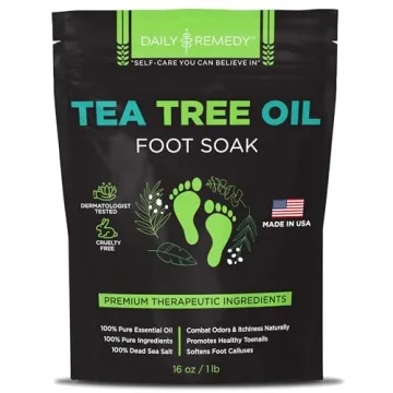 Show moreTransform your foot care routine with Daily Remedy’s Tea Tree Oil Foot Soak, a premium remedy crafted to rejuvenate and soothe tired feet. Whether you're an athlete recovering from an intense workout, someone who stands all day, or just in need of a pampering escape, this foot soak brings the spa experience right to your home. Infused with a unique proprietary blend of epsom salt, sea salt, and essential oils like tea tree, eucalyptus, peppermint, and lavender, each soak not only helps eliminate stubborn foot odors but also revitalizes and restores moisture to your feet. Imagine kicking back after a long day, submerging your feet in a warm bath filled with heavenly scents that help wash away your stress.