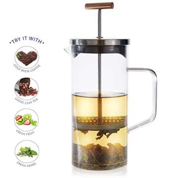 Immerse yourself in the exquisite world of tea with our stunning Tea Press, a perfect blend of functionality and elegance. Designed to enhance your brewing experience, this remarkable piece features a sleek, modern design that includes a clear glass body and a stylish copper-accented handle. It not only looks fantastic on any kitchen counter but also fits seamlessly into contemporary brewing setups, making it an undeniable centerpiece.