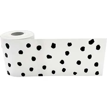 Teacher Created Resources Black Painted Dots on White Straight Rolled Border Trim (TCR8910)
