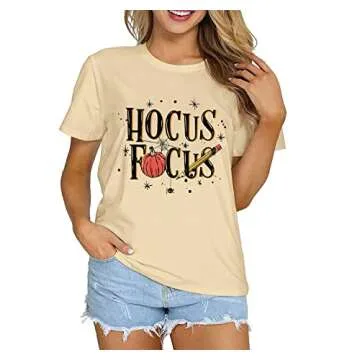 Teacher Halloween Shirt for Women Funny Hocus Pocus Tshirt Cute Pumpkin Graphic Tees Teacher Fall Season Tops (M, Light Yellow)