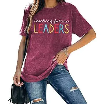 Teacher Shirt for Women Teaching Future Leaders Tshirt Letters Print Casual Short Sleeve Tees Tops
