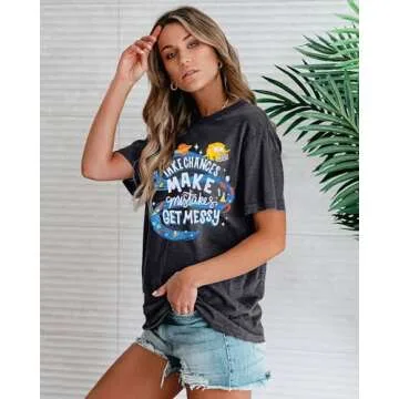 Show more This charming back-to-school teacher shirt is designed specifically for educators who want to stand out while staying comfortable. Made from a high-quality cotton blend, it's soft, breathable, and gentle against the skin, ensuring that you can wear it all day without discomfort. The design features a stylish graphic print that proudly states 'Take chances make mistakes get messy.' This thought-provoking message resonates with the core of learning and growth, making it perfect for teachers who inspire their students daily.