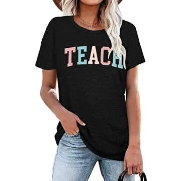 Show moreUnveil creativity and inspiration with our Teacher Shirts Women Funny Teach Printed Graphic T-shirt. Perfectly designed for the modern educator, this unique teacher graphic tee expertly combines style and comfort. Crafted from soft, breathable material, it ensures that whether you’re in the classroom or enjoying your day off, you’ll feel relaxed and chic. The loose fit and classic round neck design enhance its versatility, allowing it to be paired effortlessly with jeans, skirts, or shorts.