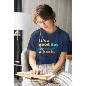 Teacher Shirts Women It's a Good Day to Read a Book Letter Print Graphic Tee Reading Book Shirt Book Lovers Gift Tops Dark Blue