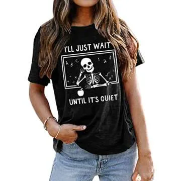 Show moreIntroducing the Teacher T-Shirt for Women - the perfect blend of comfort and humor for teachers everywhere! Crafted from breathable, stretchable fabric, this funny tee wraps you in a gentle hug that promises ultra-soft wear throughout the day. The delightful saying, "I'll Just Wait Until It's Quiet" paired with a cute skeleton graphic adds a playful touch that brightens up any classroom setting. Whether you’re educating little minds or simply enjoying your day, this shirt radiates fun and warmth, making it a must-have addition to your wardrobe.