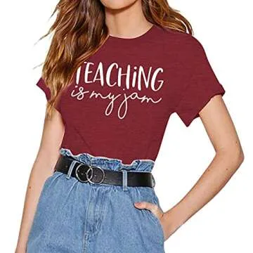 Teaching is My Jam Women T-Shirt Funny Letter Printed Summer T-Shirts Top
