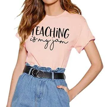 Teaching is My Jam Women T-Shirt Funny Letter Printed Summer Tee Top Pink