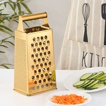 TEAHAHA 4 Sides Box Grater For Kitchen,Stainless Steel Cheese Grater With Handle,Multi-Function Vegetable Slicer Food Shredder For Chees,Ginger,Vegetables,Dishwasher Safe, Gold