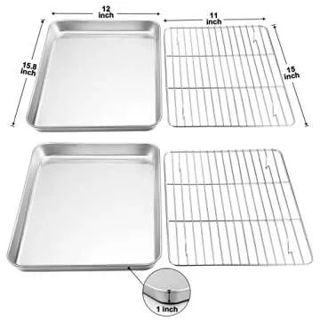 Show moreExperience the joy of baking with the TeamFar Baking Sheet with Rack Set, a versatile addition to any kitchen. This incredible set includes two premium stainless steel baking pans and two matching cooling racks, designed to elevate your baking experience to new heights. Crafted from pure stainless steel, this product is free from harmful chemical coatings, offering a rust-free, non-toxic solution for your culinary creations. Whether you are whipping up batch after batch of cookies, roasting vegetables, or preparing meats, this baking set provides the perfect balance of functionality and healthiness.