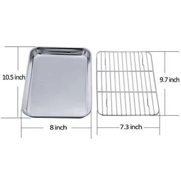 Show more Discover the ultimate solution for your culinary adventures with our Premium Stainless Steel Toaster Oven Pan and Rack set. Crafted with the finest premium materials, both the pan and rack are made from high-quality stainless steel that ensures a safe, non-toxic cooking experience. Unlike traditional metal options, our product is free of harmful coatings, which means you can enjoy every bite without worrying about chemicals leaching into your food.