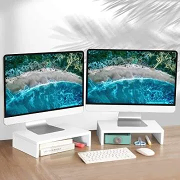 TEAMIX White Monitor Stand Riser - 2 Pack with Adjustable Height