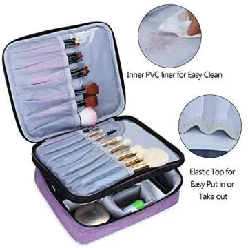 Show moreIntroducing the Teamoy Travel Makeup Brushes Bag, the ultimate companion for beauty enthusiasts who desire both style and functionality on the go. Crafted for convenience, this professional makeup train case is not just a storage solution; it's an organizer that transforms your hectic beauty regimen into a seamless experience. With its elegant design and practical features, it's ideal for everyone from busy travelers to beauty aficionados who appreciate order and elegance in their makeup routine.