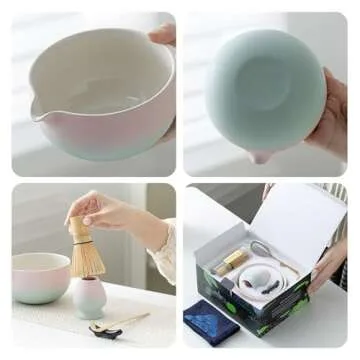 TEANAGOO Matcha Whisk Set,Ceremony Matcha Set,Matcha Kit Grident Pink,Matcha Tea Set for Making Breakfast/Matcha Latte,Matcha Whisk and Bowl with All Accessories,Gift for Matcha Lover/Friend/Family